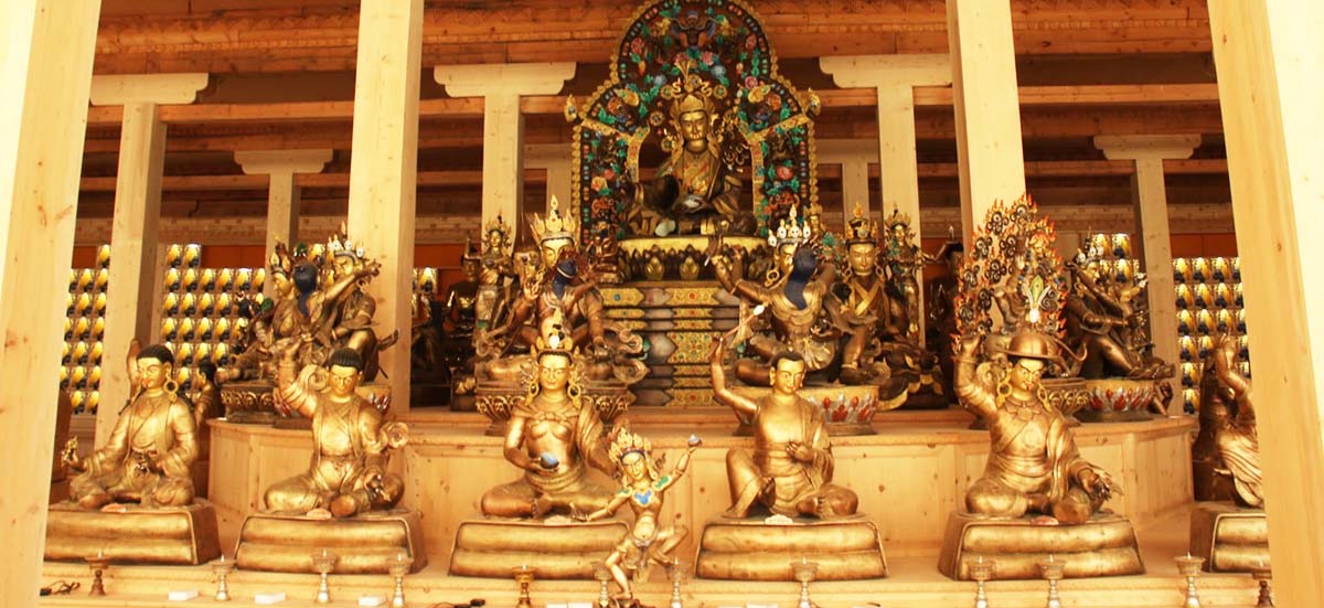 這次在桑隆寺3樓修建的蓮師持明總集聖殿,塑造教法中上師、本尊、空行、八大持明、蓮師二十五大弟子等鎏金大佛像,以及千尊蓮花生大士的聖像、完整的鎏金供具,以及包含地板、樑柱雕刻、木作和燈飾等所有內部裝修。